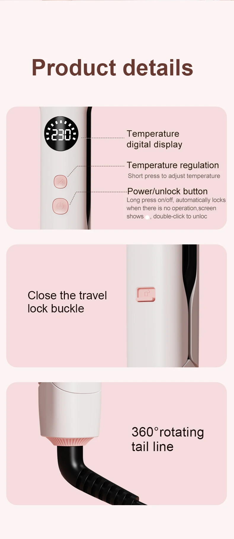 🔒 6. Smart Lock & 360° Rotating Cord