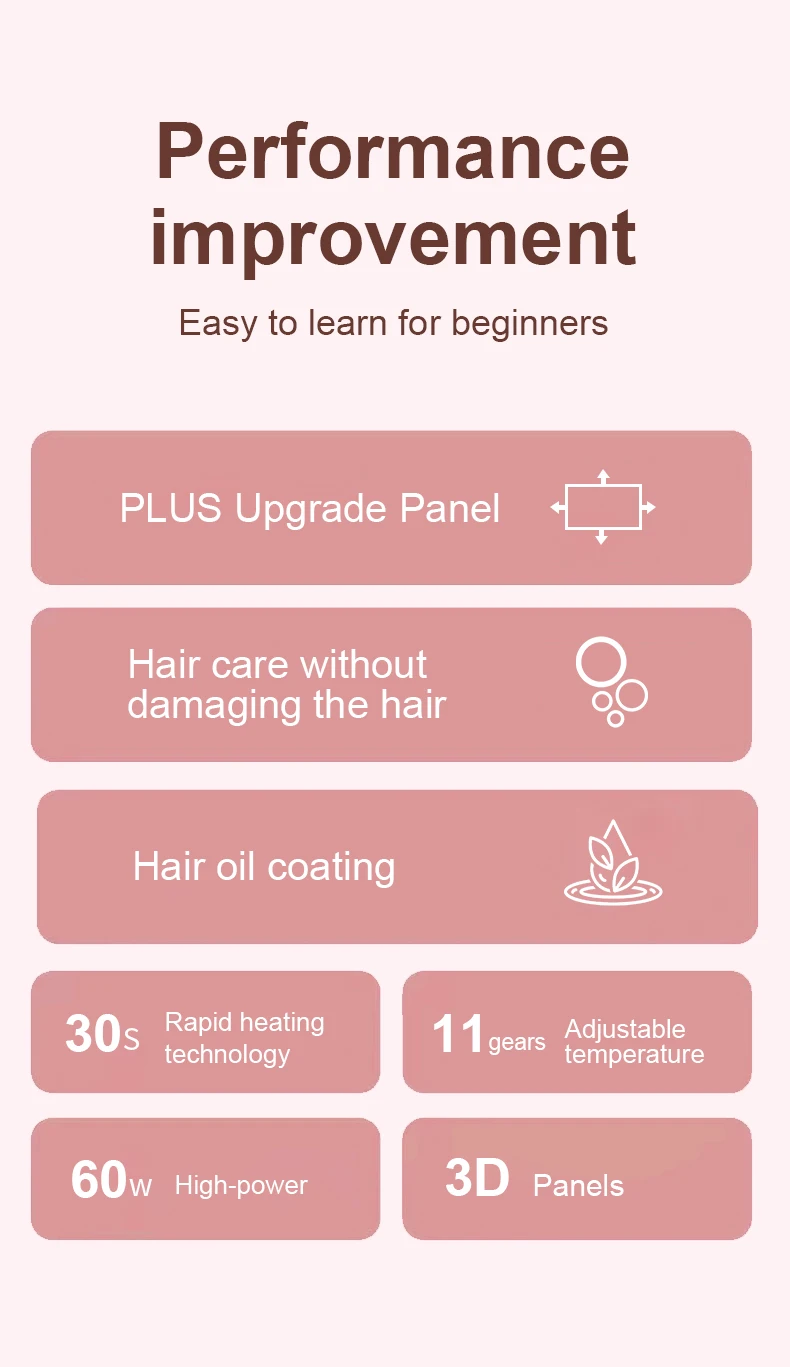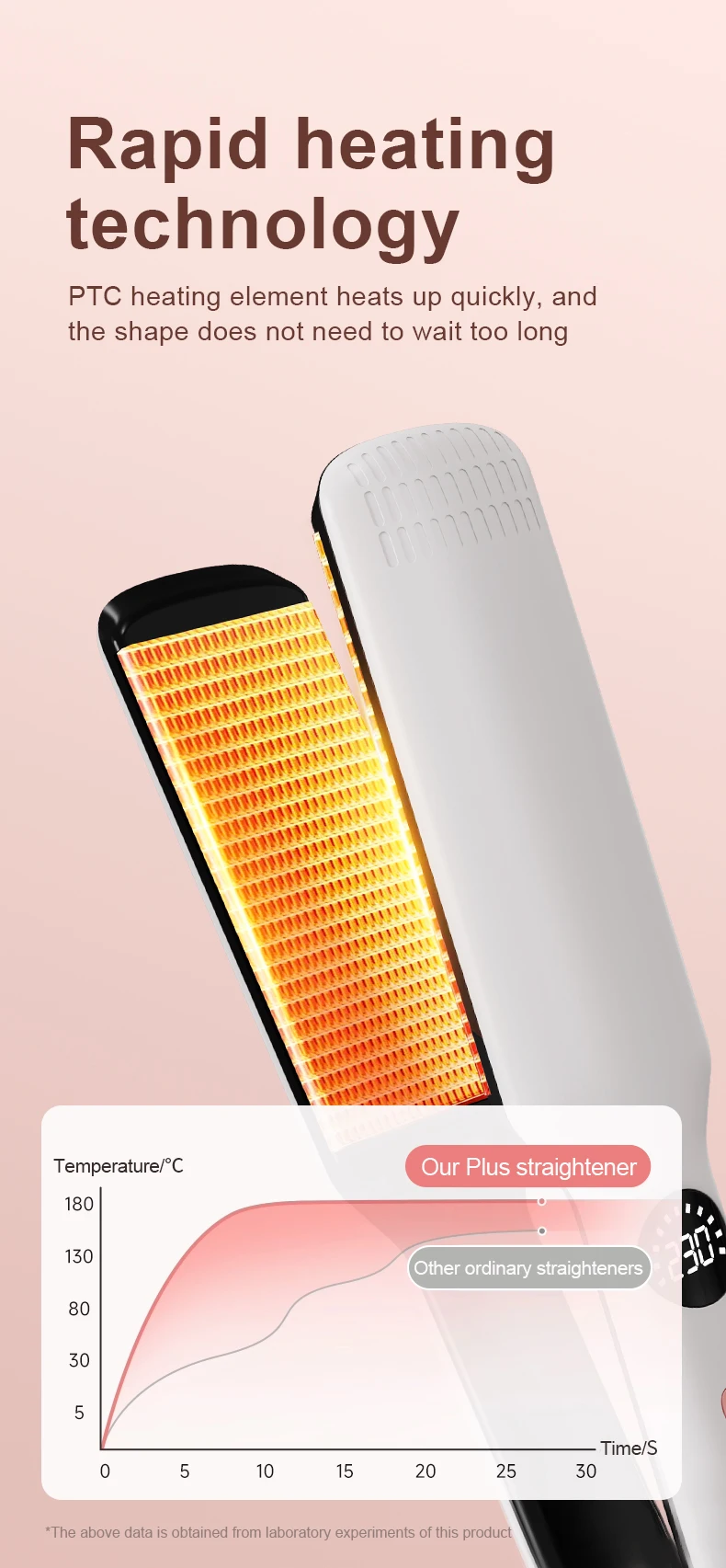 Advanced PTC heating element reaches styling temperature in just 30 seconds.