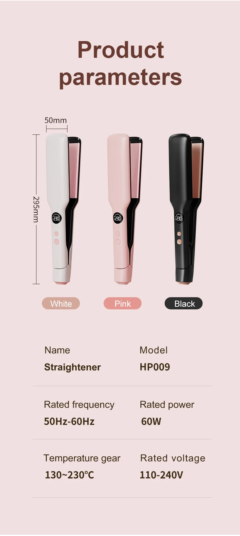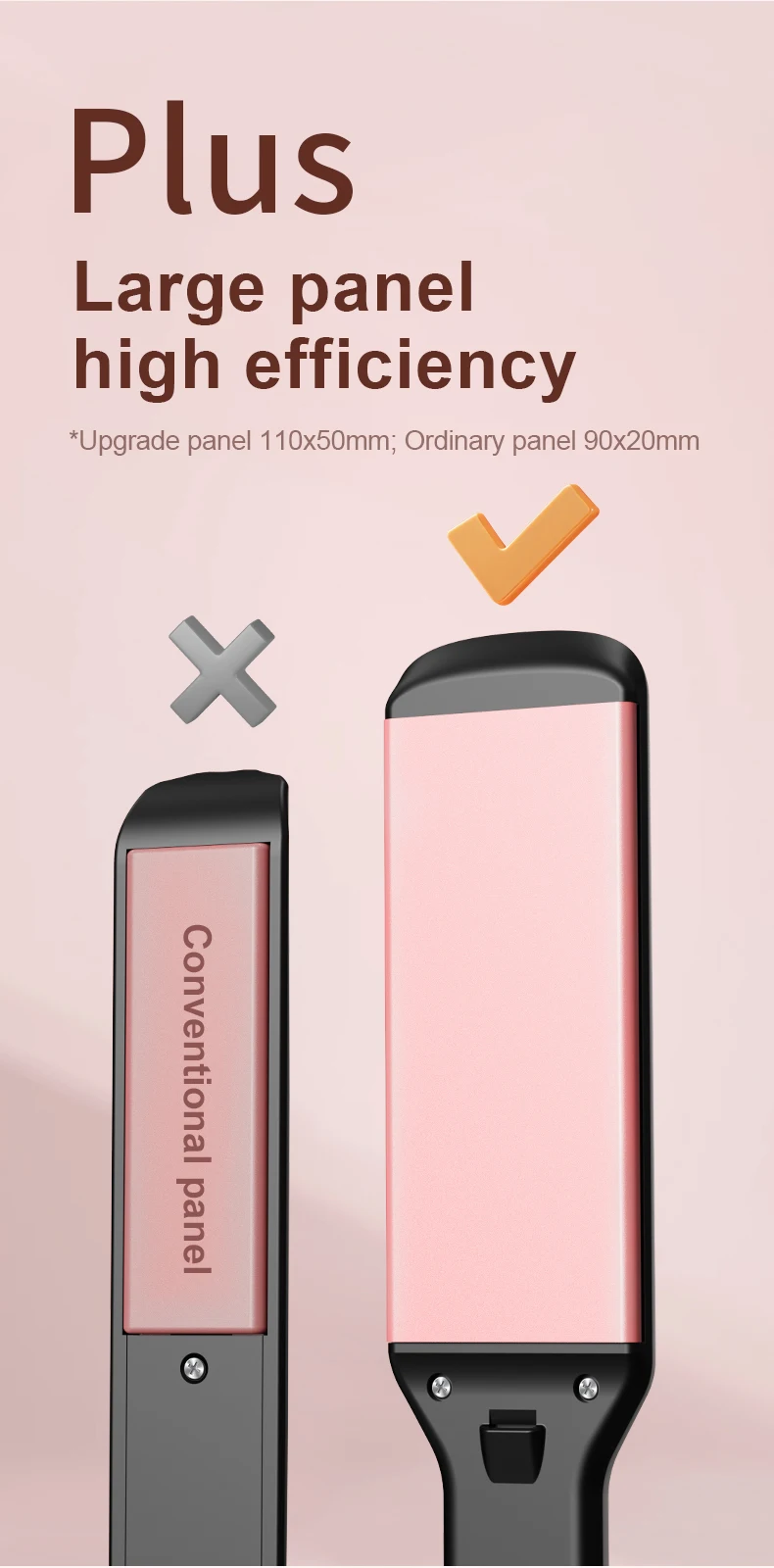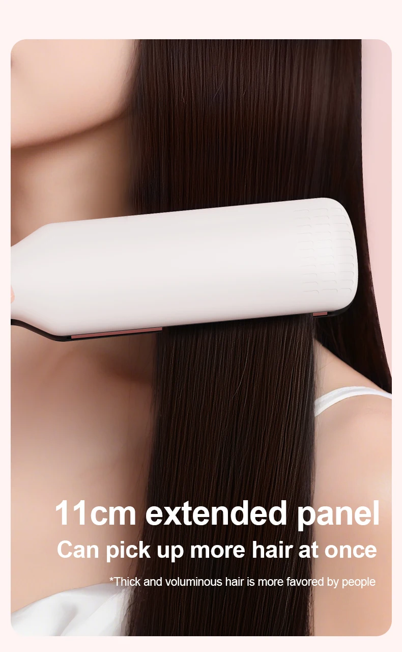 Covers 50% more hair than conventional straighteners (110x50mm vs. 90x20mm).